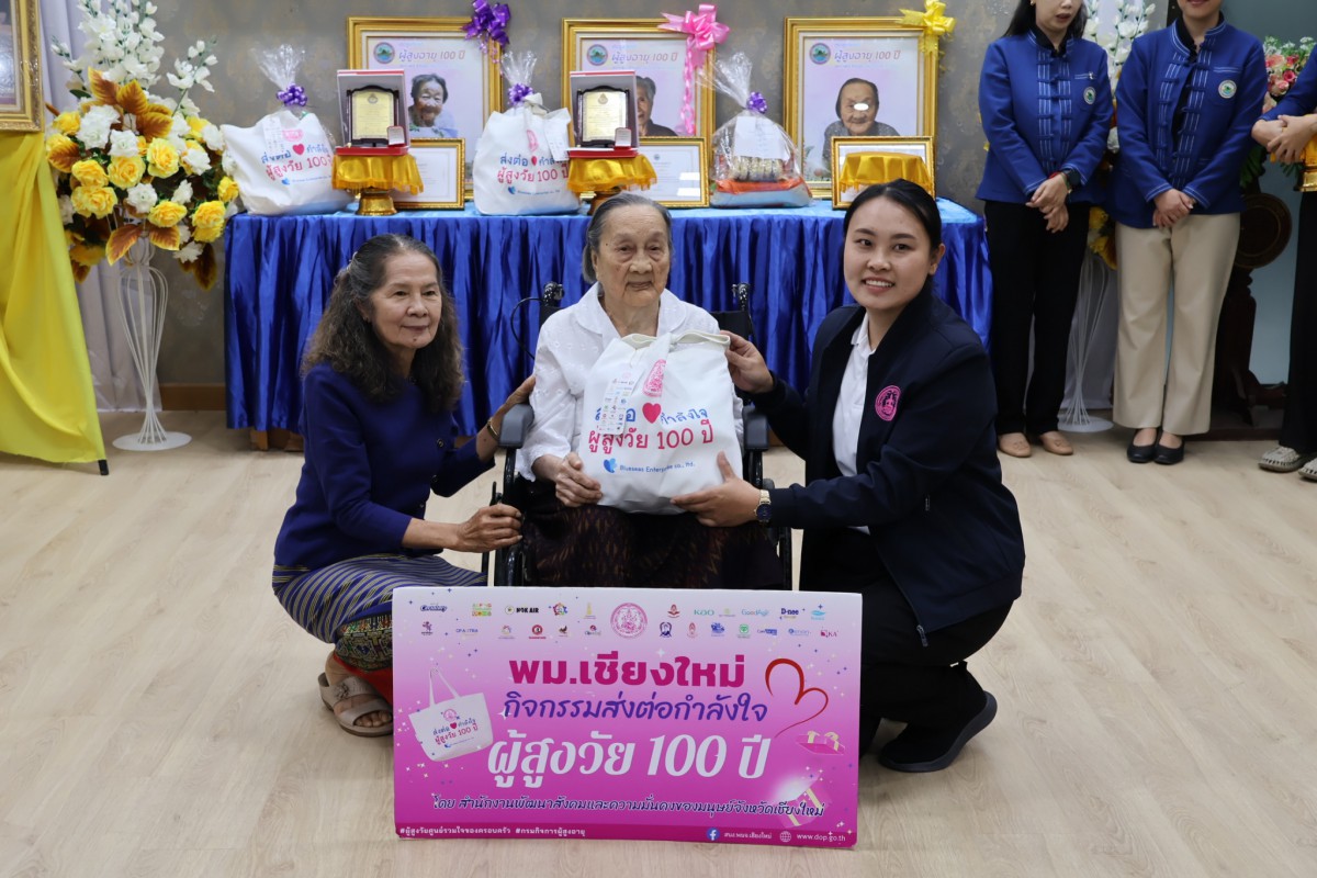 วันที่ 17 ธันวาคม 2568 ศูนย์พัฒนาการจัดสวัสดิการสังคมผู้สูงอายุบ้านธรรมปกรณ์(เชียงใหม่) ร่วมกับนางจิราพร เชาวน์ประยูร ยามาโมโต้ ประธานสาขาสมาคมสภาผู้สูงอายุแห่งประเทศไทยฯ ประจำจังหวัดเชียงใหม่ ร่วมเยี่ยมบ้านผู้สูงอายุ 100 ปี ณ พื้นที่ ตำบลยุหว่า และตำบลสันป่าตอง อำเภอสันป่าตอง จังหวัดเชียงใหม่ จำนวน 4 ราย เพื่อมอบโล่ผู้สูงอายุ 100 ปี และมอบเครื่องอุปโภคบริโภค