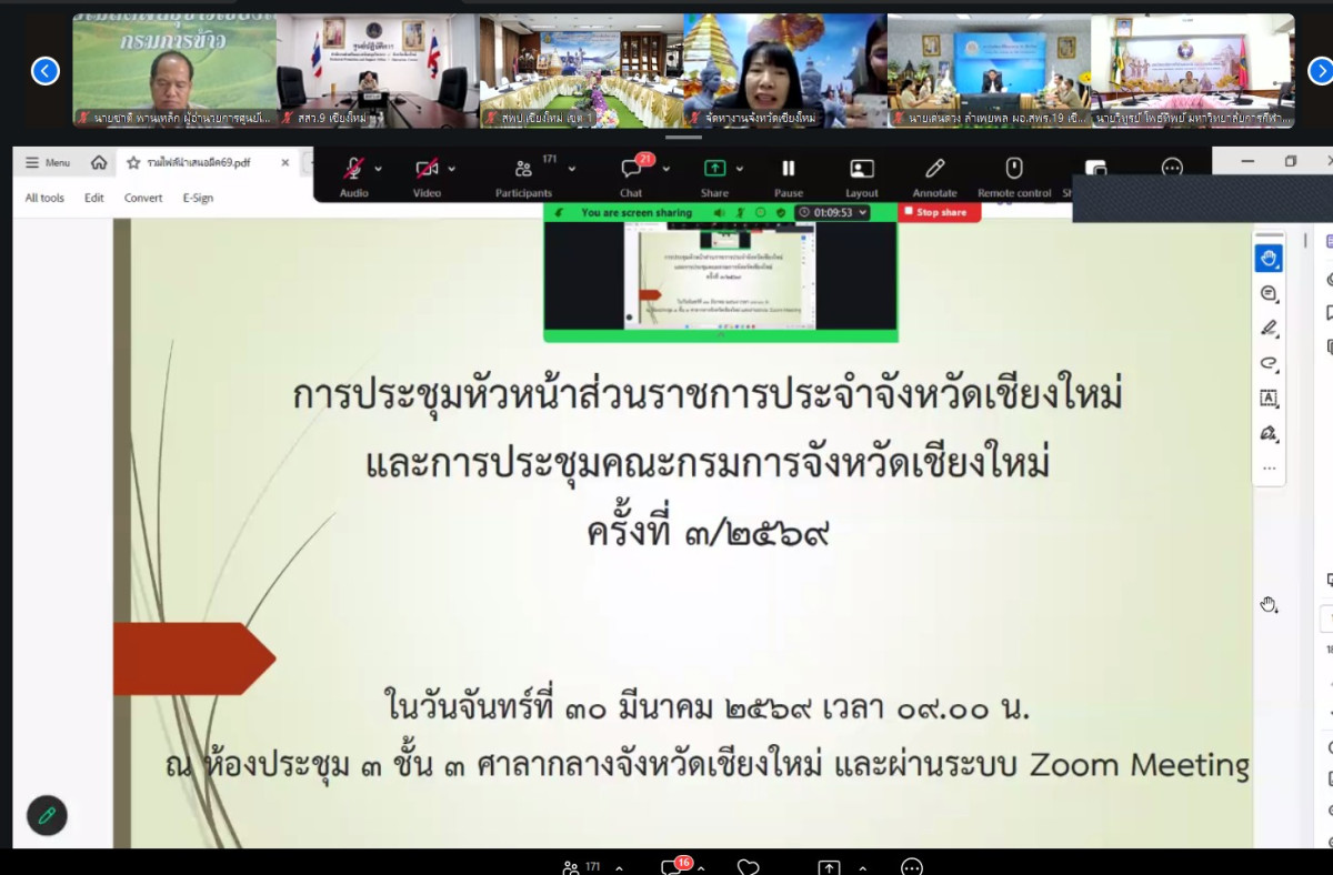 วันที่ 30 มีนาคม 2569 นางสาวอภิรชญา ชัยติกุล ผู้อำนวยการศูนย์พัฒนาการจัดสวัสดิการสังคมผู้สูงอายุบ้านธรรมปกรณ์(เชียงใหม่) เข้าร่วมประชุมหัวหน้าส่วนราชการประจำจังหวัดเชียงใหม่ และการประชุมคณะกรรมการจังหวัดเชียงใหม่ ครั้งที่ 3/2569 ผ่านระบบ Zoom Meeting โดยมี นายรัฐพล นราดิศร ผู้ว่าราชการจังหวัดเชียงใหม่ เป็นประธานการประชุม