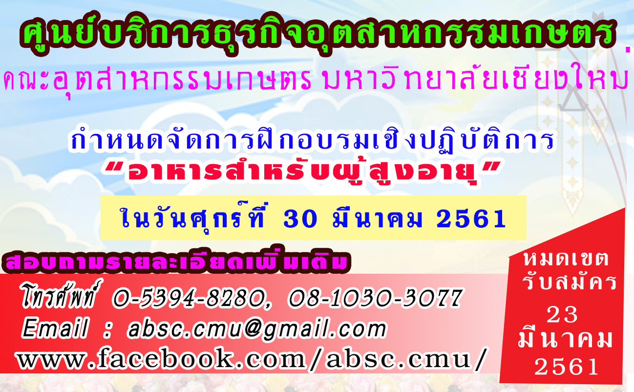 ประชาสัมพันธ์ การฝึกอบรมเชิงปฏิบัติการอาหารสำหรับผู้สูงอายุ